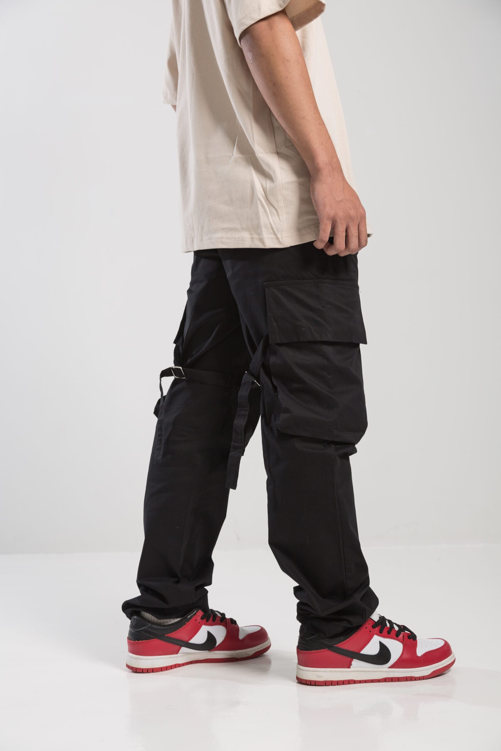-2 big pockets on knee with wind rope design.